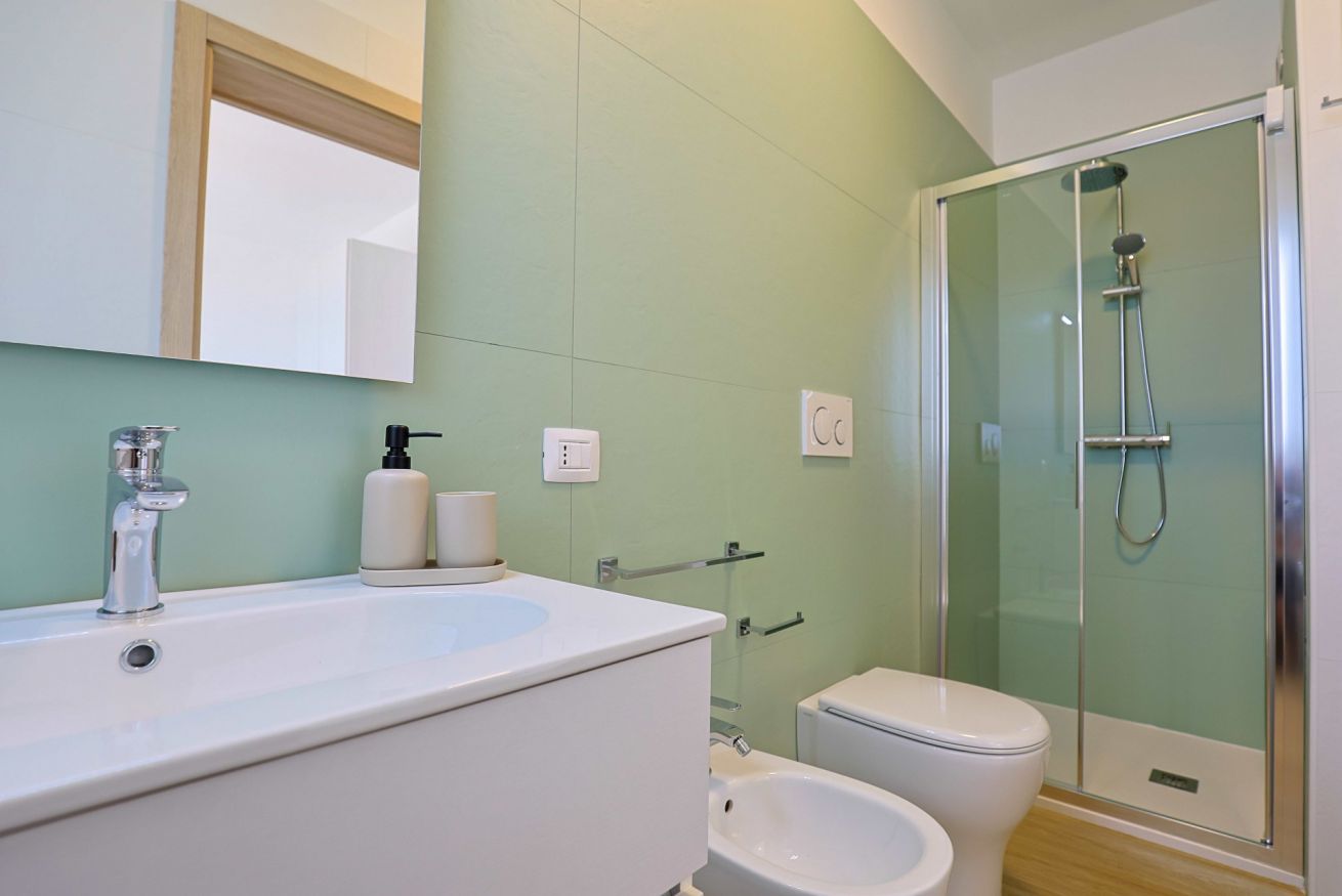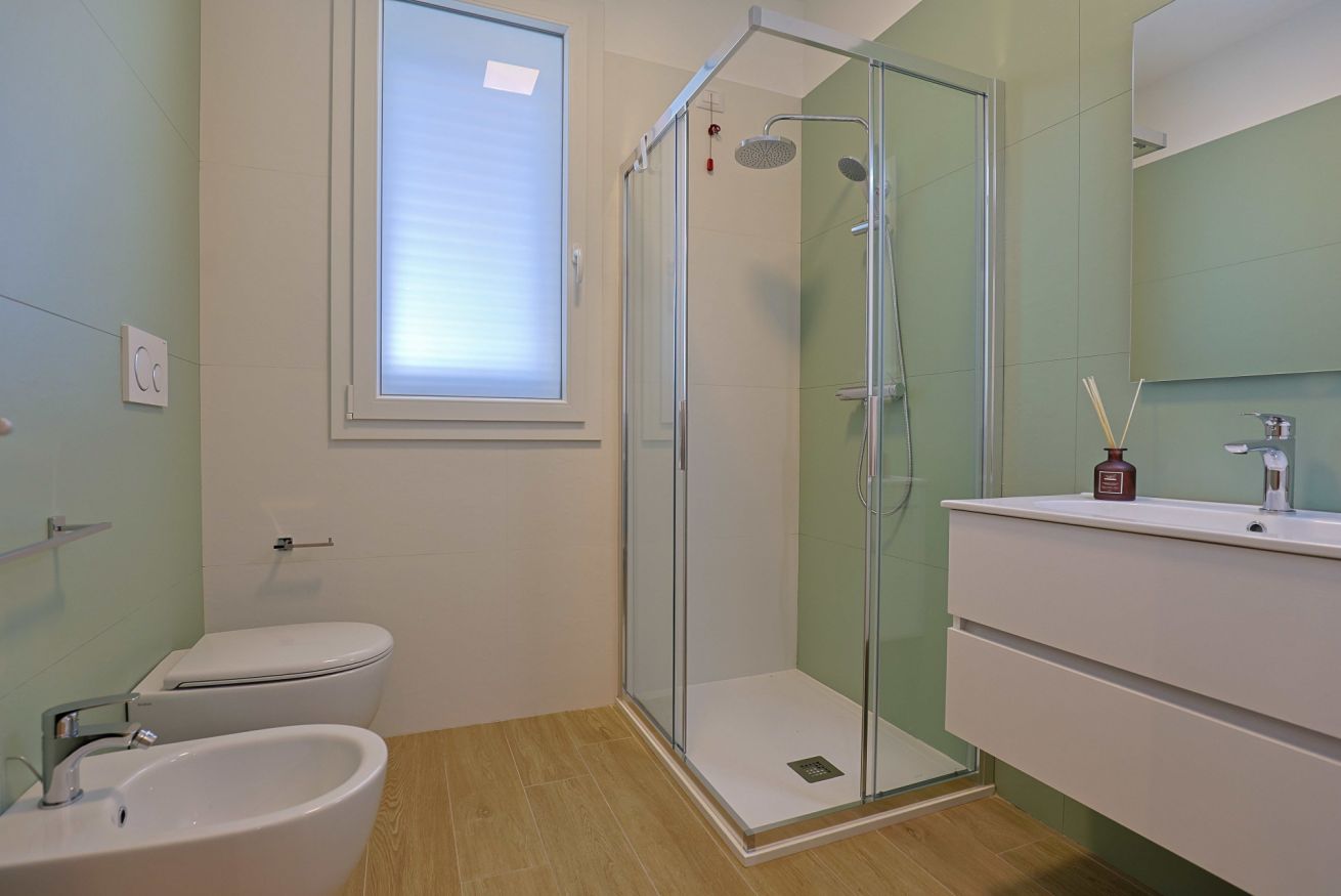 Appartamento completamente indipendente posto al piano primo, dotato di giardino di esclusiva pertinenza, tre camere da letto (allestibili entrambe con due letti singoli oppure con due letti matrimoniali), un soggiorno con cucina e divano letto matrimoniale - per un totale di max otto posti letto - due bagni con doccia e un vano lavanderia.